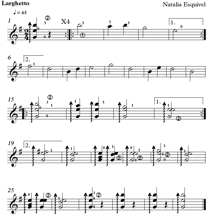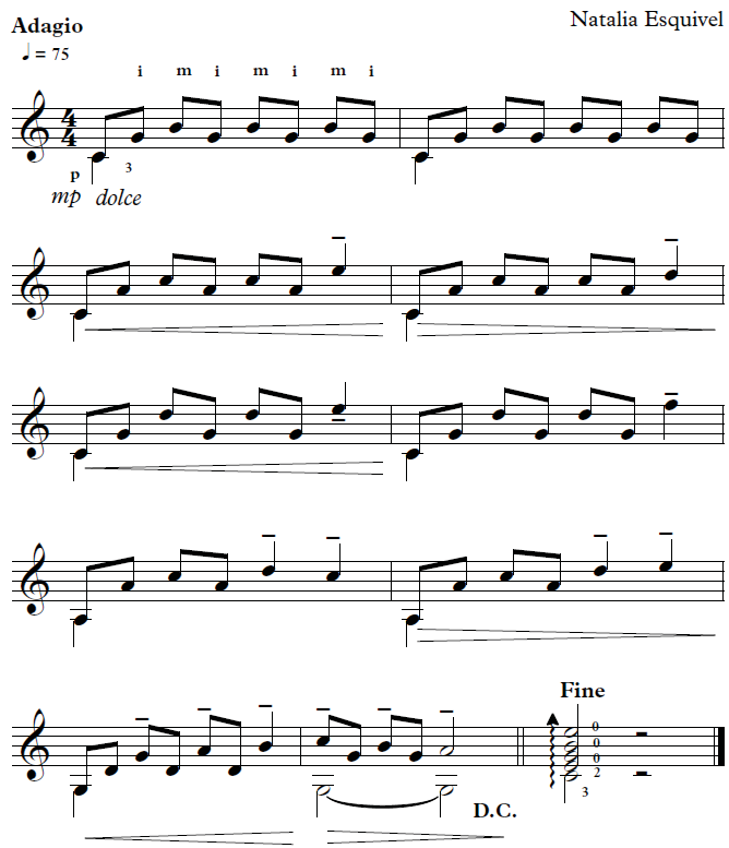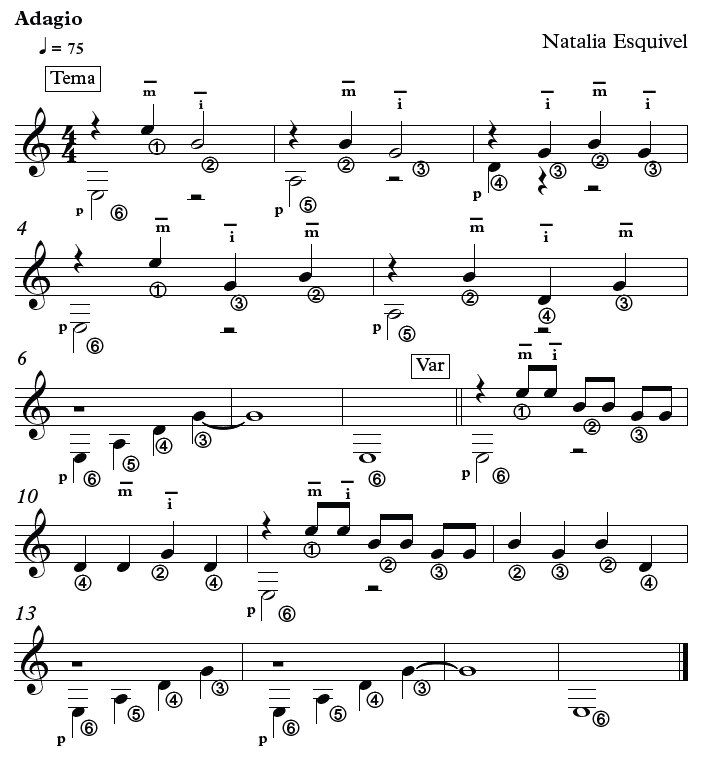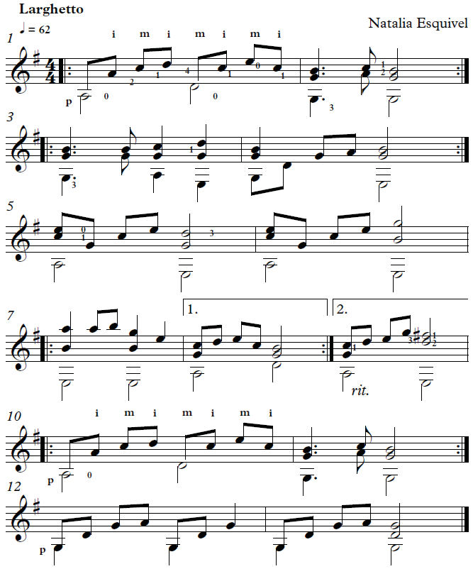 La “Suite Guitarra Social”, de la compositora costarricense Natalia Esquivel Benítez, es el fruto de una residencia artística en composición, patrocinada por el proyecto IBERMUSICAS. Consta de 17 movimientos, inspirado cada uno, en los Objetivos de Desarrollo Sostenible, (ODS) de la Organización de las Naciones Unidas, y en el método creado por la compositora espa-ñola, Marta Lozano sobre “Música Social” para la educación en valores a través de la composición.