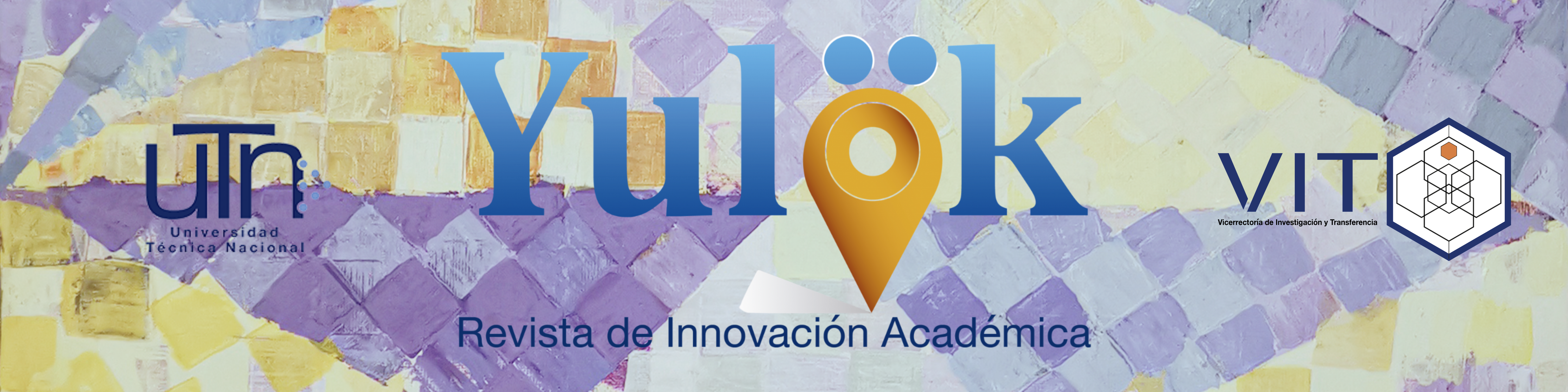 Yulök Revista de Innovación Académica es una publicación semestral, gratuita y de acceso abierto, cuya entidad editora es la Universidad Técnica Nacional (Costa Rica), bajo el Código ISSN 2215-5066 para la versión impresa y el código ISSN 2215-5147 para la versión digital, se encuentra adscrita a la Vicerrectoría de Extensión y Acción Social, bajo el soporte de la Red de Innovación Académica.